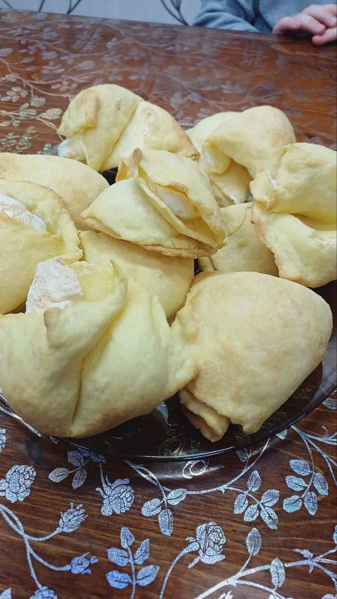 ⠀380 грамм муки просеиваем , добавляем половину чайной ложки соли , 200 г. сливочного масла , перетираем руками в крошку. Добавляем 4 желтка, 100г. сметана , замешиваем тесто. Отправляем на полчаса в холодильник. ⠀Формируем из теста шарики, раскатываем. Для начинки взбиваем 4 белка и 200 г. сахара , белки взбиваем в пену и постепенно всыпаем сахар, взбиваем до устойчивых пиков . На пласт теста выкладываем чайную ложку меренги, складываем пополам и еще раз пополам. Выпекаем при 180 градусах 8 минут. ⠀💜 Попробуйте, это нереально вкусно
