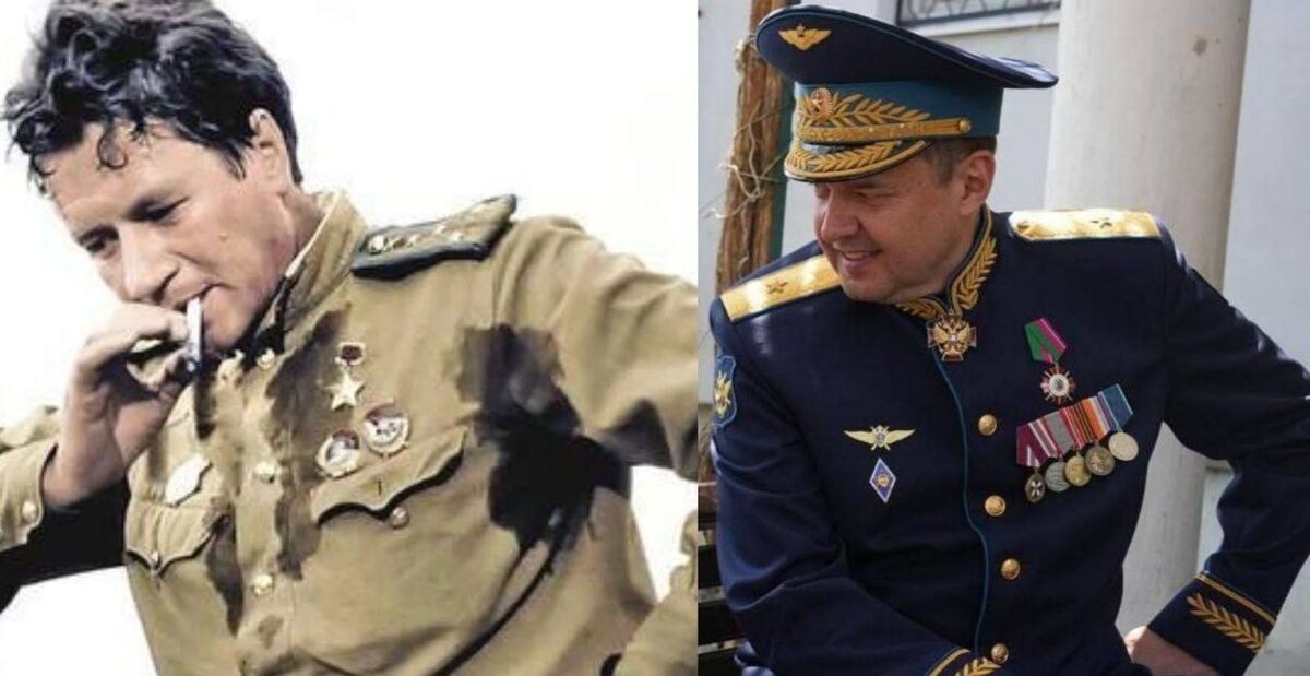 Слева – советский кинорежиссёр и актёр Леонид Быков в роли Героя Советского Союза гвардии капитана истребительной авиации Алексея Титаренко с позывным «Маэстро».