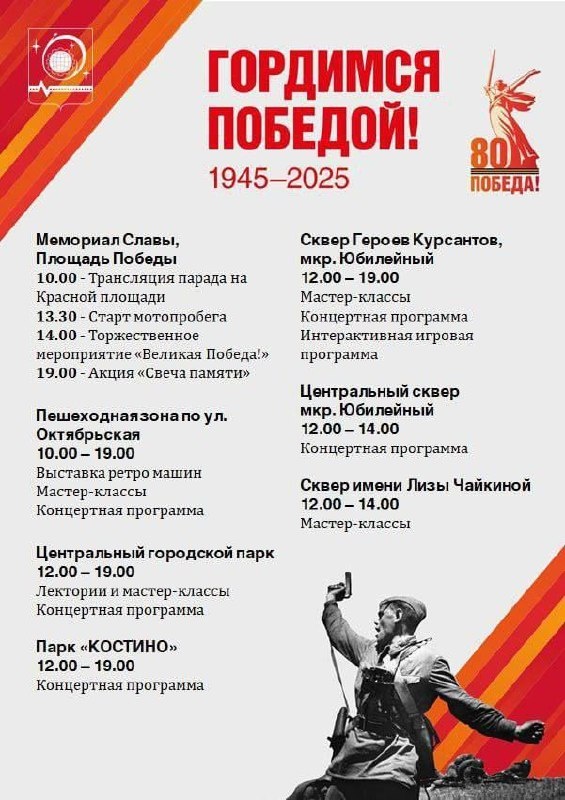 Программа мероприятий на 9 мая в Королёве. В Мытищах, судя по отсутствию информации от главы, все отменили❌