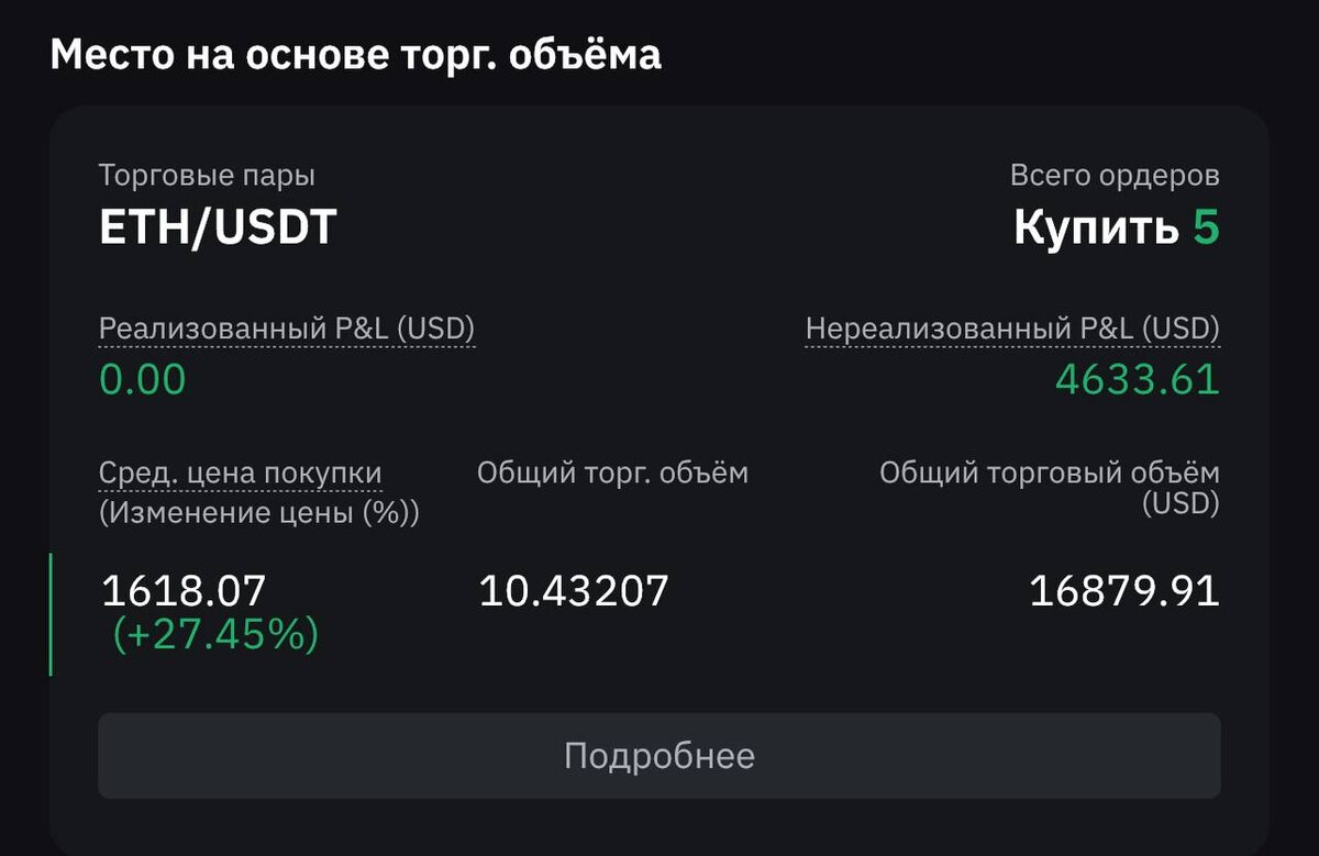 Тем временем тот #ETH $ETH что я набрал на «детский депозит», в ожидании иксов, уже дает +6000$.