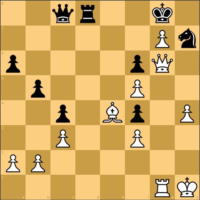 Окончание партии Фишер - Бенко, 1965 год. У Фишера две лишние пешки, однако Бенко еще держится. Как выиграть белыми? Ход белых, белые сделали ход и черные сдались, поэтому в названии "выигрыш в 1 ход". Более интересная задача тут >>>>> Первый верный ход смотрите далее. 1. Роберт Фишер отдал ферзя на "е8" и соперник сдался. 1. ................................ черные бьют ферзя ладьей. 2. Белые дают шах слоном и далее выигрыш прост.