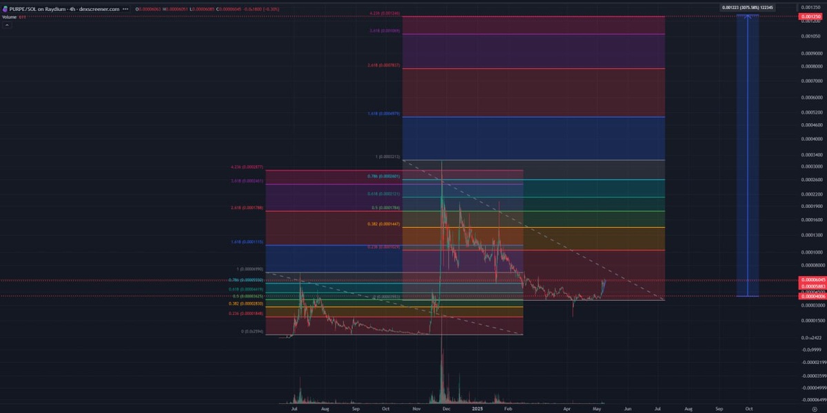 #PURPE Один и тот-же фрактал повторился 2 импульса подряд (2й рост это копия первого). Будет ли 3й рост повторением того-же фрактала? Посмотрим 😉 #memecoins #Crypto