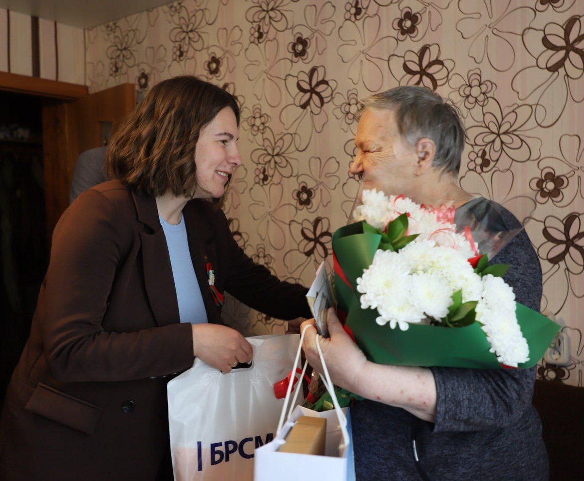 Сегодня поздравления с Днем Победы принимали лица, пострадавшие от последствий войны, малолетние узники Лариса Николаевна Василькевич и Александр Иванович Гладкий, а также труженик тыла Никон Владимирович Щука.