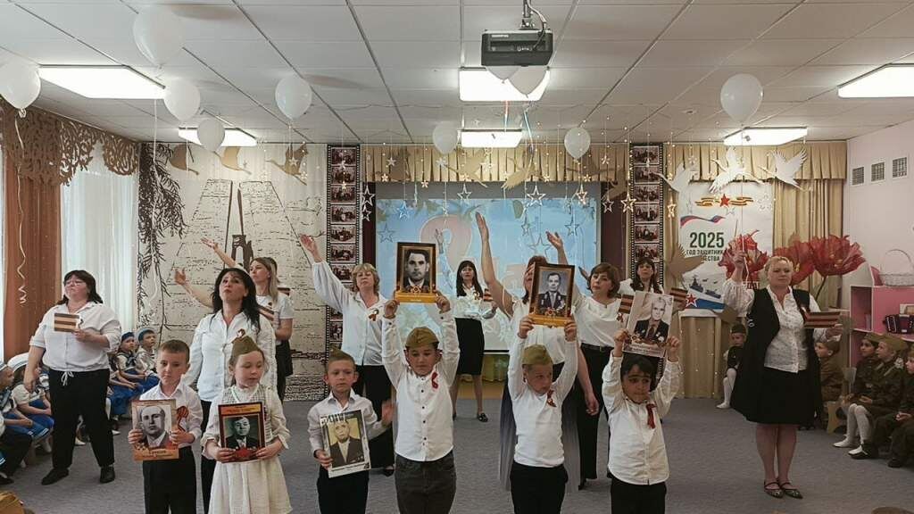 Это значимое событие собрало не только детей, но и уважаемых гостей – участников хора ветеранов «Надежда», которые согревали слух зрителей своими трогательными песнями о войне и мире. Концерт начался с горячих поздравлений и теплых слов от воспитателей. Дети всех групп подготовили яркие номера – песни, танцы и стихи, которые были полны патриотизма и гордости за нашу страну. Искренние эмоции и детская радость наполнили зал, делая этот день поистине незабываемым. После концерта состоялось совместное возложение цветов к мемориалу «Жертвам фашизма», где все присутствующие почтили память героев, отдавших свою жизнь за нашу свободу. Особую значимость этому моменту придал рассказ учителя истории школы №27 Ирины Пимкиной о подвиге жителей города Шахты, которые на фронте и в тылу сделали все возможное для победы. Ее слова вдохновили детей и напомнили всем о величии духа, единстве и мужестве нашего народа. — В нашем детском саду мы всегда будем прививать детям уважение к ветеранам и заботить