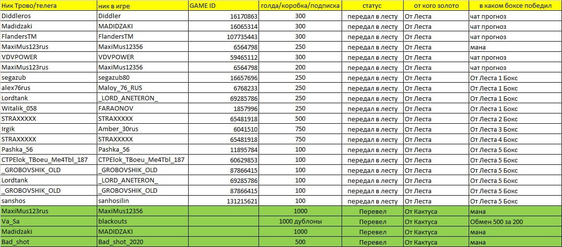 Инфа по начислению Золота