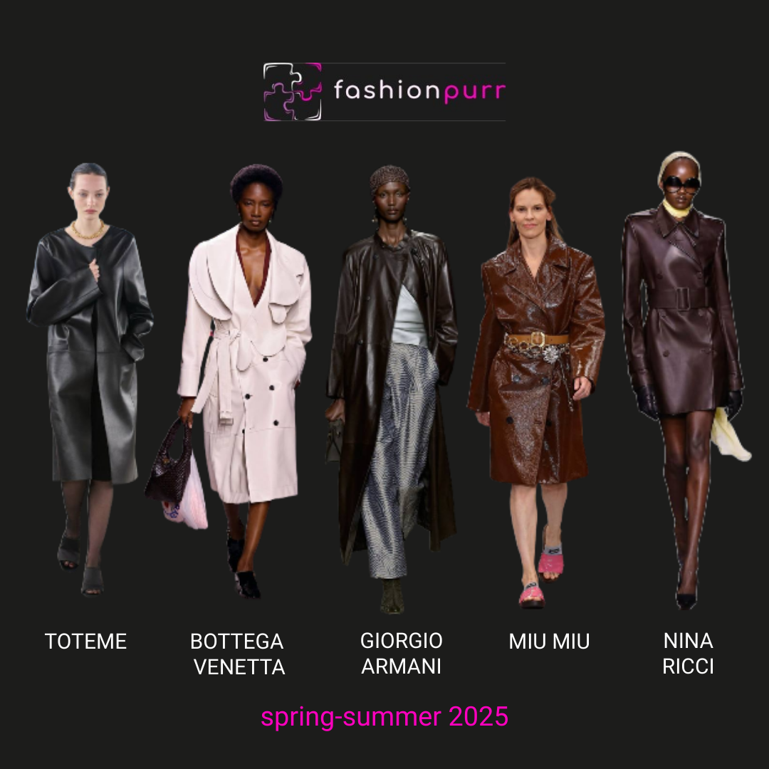 "Уже много лет мы видим как изделия в кожаных фактурах на подиумах занимают лидирующие позиции. Кожаные брюки, жакеты, рубашки и верхняя одежда, действительно, стали не просто трендовыми вещами в гардеробе девушек, но и крепкой базой. Этой весной дизайнеры предлагают обратить особое внимание на тренчи, выполненные из кожи или экокожи": Полина Лукьянова (эксперт платформы Fashionpurr). На подиумах мы видим коричневые, карамельные, винные, белые тренчи, а также плащи с анималистичным принтом. Однако нетленной классикой по-прежнему остаётся чёрный. Какую модель и цвет выбрать? Крой, длина и отделка тренча могут быть абсолютно разными: прямые силуэты в винтажной эстетике, оверсайз в длине макси, укороченные модели на поясе – выбирайте то, что подходит и откликается вам больше всего. Товары, похожие на модели с подиума, есть у Loverepublic, Ivolga, а также на маркетплейсах (смотреть здесь). Для подписчиков нашего канала в Дзен промо-доступ на 3 дня бесплатно без ограничений к 100+ капсу