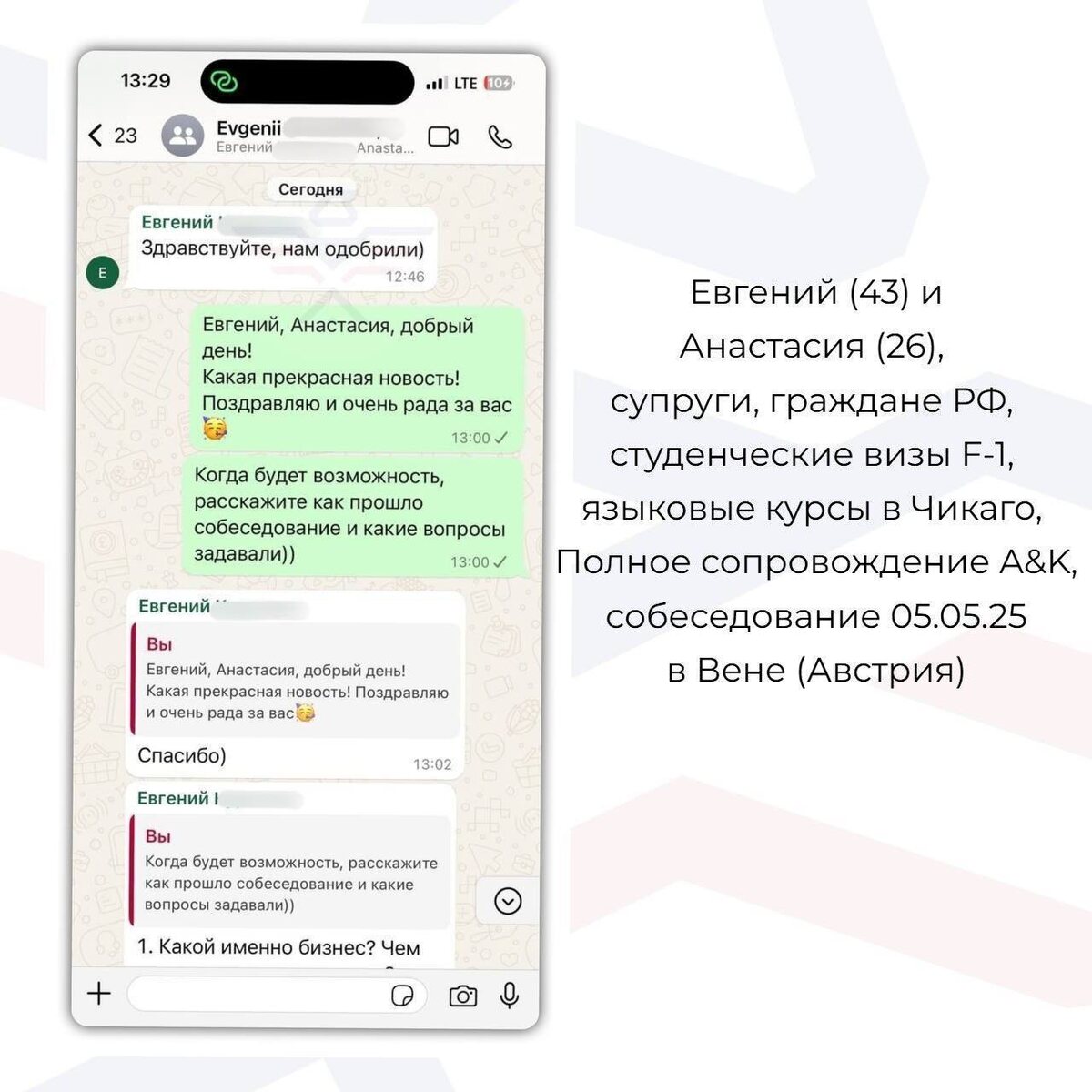 С нами в лотерее «Грин-карт» выиграли 33 анкеты — это 72 человека с учетом супругов и детей! Поздравляю всех победителей 🥳 Тех, кто пока не выиграл, хочу поддержать и поделиться хорошей новостью: если вы хотите получить опыт жизни в США, до конца мая на нашем сайте доступны скидки до $600 на все пакеты сопровождения. Знаю, что многие всегда ждут результатов лотереи, чтобы уже потом начать реальные действия. Так вот настало время изменить свою жизнь, а не полагаться только на удачу в лотерее. Сейчас идет большая волна одобрений, которая, по нашим прогнозам, продлится до конца лета. Это идеальная возможность совместить ближайший отпуск с прохождением собеседования на американскую визу. А мы это поможем воплотить в жизнь по доступной цене. Оставляйте заявку на бесплатную консультацию https://us-ak.com/consultation-usa и узнавайте все детали своего индивидуального пути. Для мотивации прикрепляю свежие отзывы наших клиентов — на их месте действительно можете оказаться и вы. Больше кей
