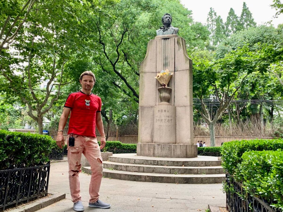 Оказывается, что "чувства добрые» лирой он пробудил и в Поднебесной 🇨🇳. В Шанхае тоже есть свой памятник Пушкину. Русская община установила там бюст поэта в далёком 1937 году — к 100-летию со дня его смерти. Тогда Пушкин смотрел на север — в сторону России 🇷🇺.