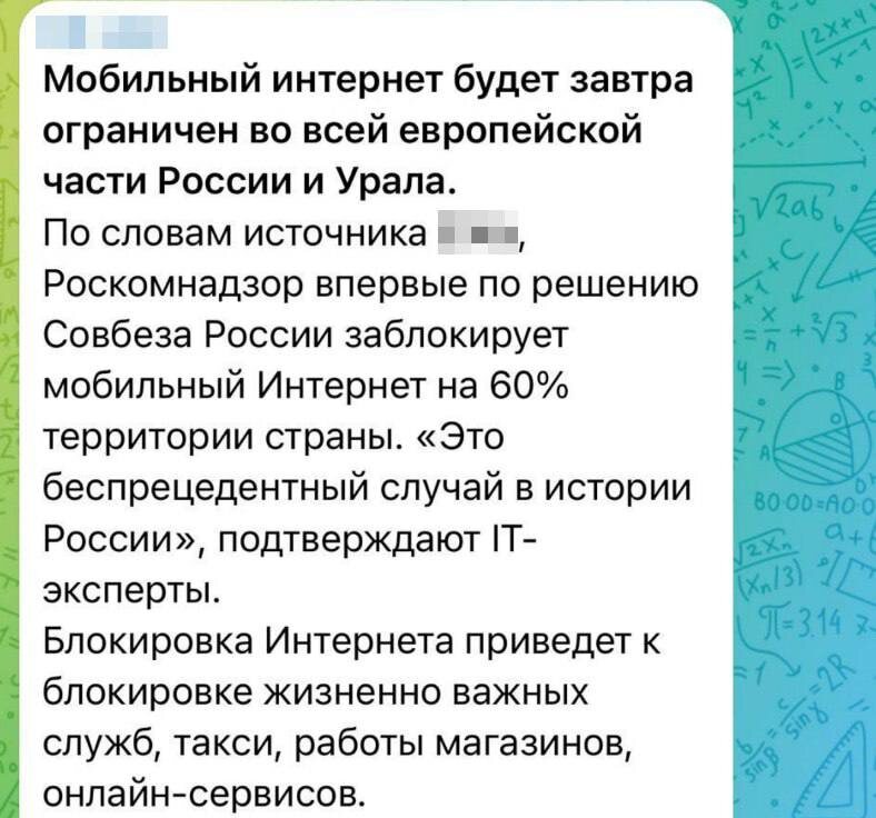 ⚡️Интернет завтра отключат во всей европейской части России, сообщают СМИ