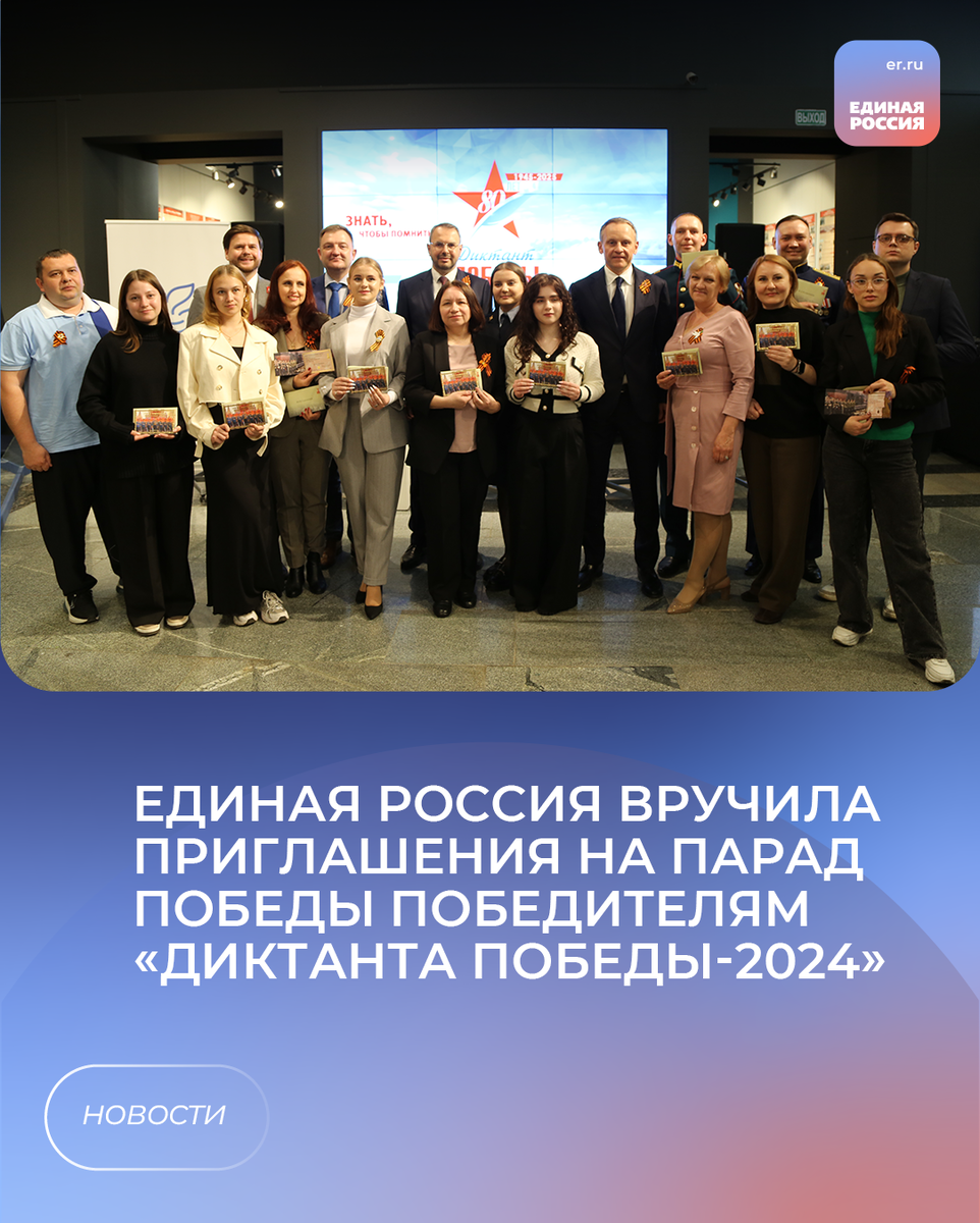 Единая Россия вручила приглашения на парад Победы на Красной площади победителям Диктанта Победы-2024