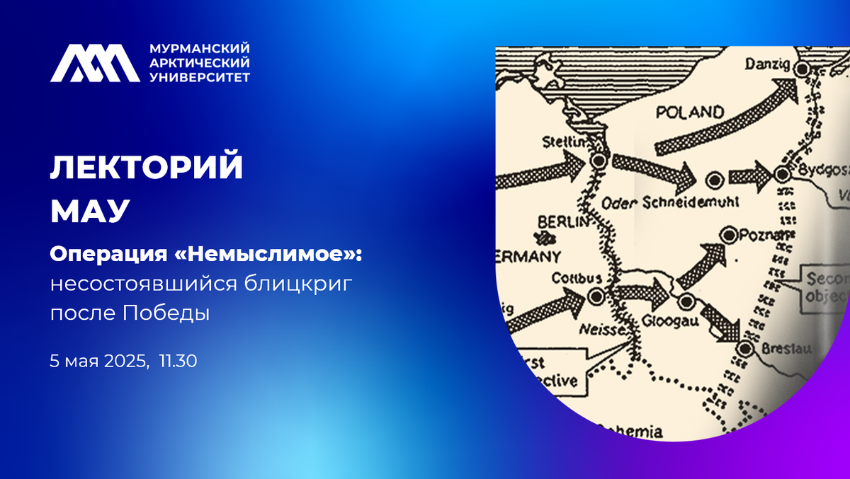 Лекция «Операция “Немыслимое”: несостоявшийся блицкриг после победы» заведующей кафедры истории Мурманского арктического университета, канд.истор.наук Юлии Бардилевой посвящена одному из мрачных сценариев развития отношений стран-союзниц по антигитлеровской коалиции в конце Второй Мировой войны. Стремительное продвижение советских войск, освобождавших от нацистского оккупационного режима народы Европы, героические победы СССР на протяжении 1943 – 1945 гг., стойкость и мужество советских людей, способствовали росту симпатий как к советскому государству, так и коммунистическим идеям. Усиление авторитета СССР на мировой арене не входило в планы Великобритании и США, желавших воспользоваться плодами грядущей победы. Особую подозрительность в отношении СССР в конце войны демонстрировал