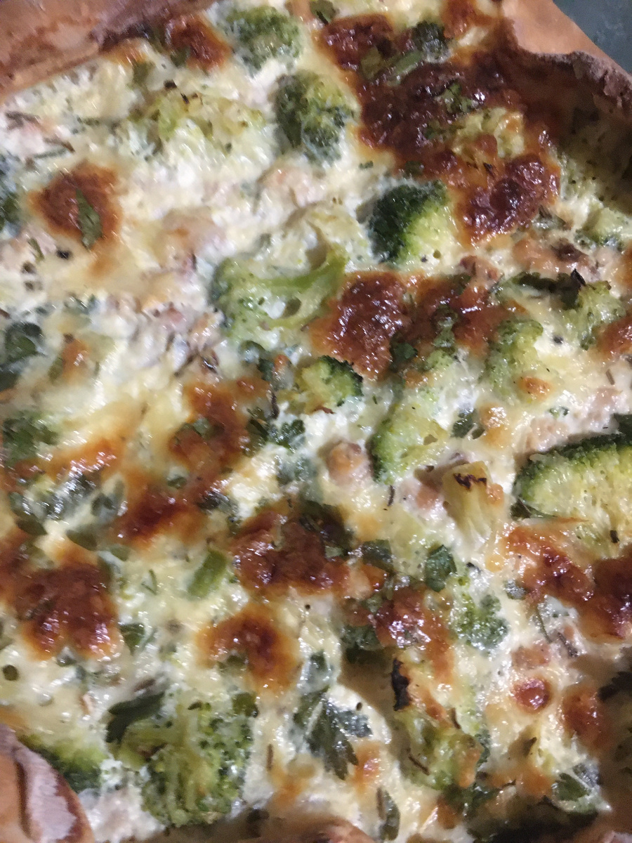 Этот наивкуснейший пирог подойдет всем, кто любит выпечку с рыбой, а также тем, кто следит за питанием! На форму 26 см. Для теста: Для начинки: Для заливки: Приготовление Для начала приготовить тесто: просто смешать все ингредиенты и замесить мягкое эластичное тесто. Завернуть тесто в пленку и убрать в холодильник на 30 минут. Приготовим начинку: Горбушу очистить от костей и кожи. Хорошо размять вилкой. Если броколли замороженная, то преварительно разморозить. Если свежая, то порезать на небольшие соцветия и отварить буквально 3 минуты. Для заливки смешать молоко, тертый сыр, яйца, сметану и немного соли. Можно добавить специи по вкусу и зелень. Достатть тесто, раскатать и выложить в форму, чтобы получились бортики. Сверху выложить начинку: рыбу+броколли. Залить подготовленной заливкой. Запекать в духовке около 40 минут при температуре 180%. Смотрите по готовности и проверяйте. Наслаждайтесь вкусным кишом! И следите за моими публикациями. Буду отслеживать, что вам больше нравиться, чт