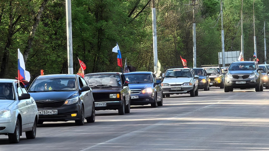 Сегодня в городе Балашов Саратовской области устроили автопробег, посвященный 80-летию Великой Победы. Возглавил колонну экипаж ДПС. За ним последовали глава Балашовского района Михаил Захаров и чиновники районной администрации. Многие автомобили украсили по-военному, на некоторых были портреты участников войны. Часть автолюбителей и пассажиров была в форме советских солдат. Под песни военных лет на машинах развивались флаги, в том числе российский триколор и флаг СССР. Колонна состояла примерно из 250 автолюбителей и нескольких мотоциклистов. Участники стартовали от автомобильного моста через реку Хопер, проехали по улицам Советской, Ленина, Привокзальной и Карла Маркса, после чего прибыли в парк имени Куйбышева. Там, у монумента Славы, собравшиеся возложили цветы в память о красноармейцах.