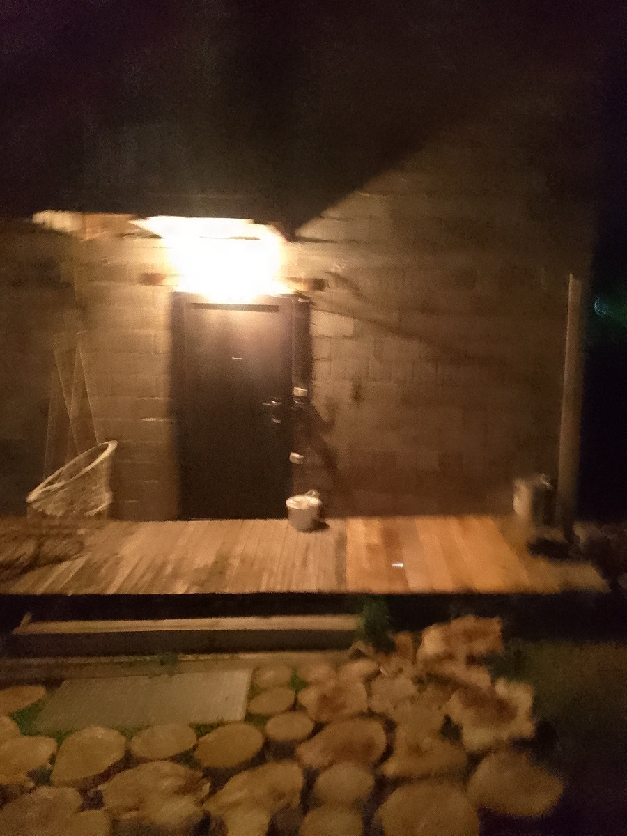 Пристройку на второй раз красить надо. Халявной краски еще ведро.