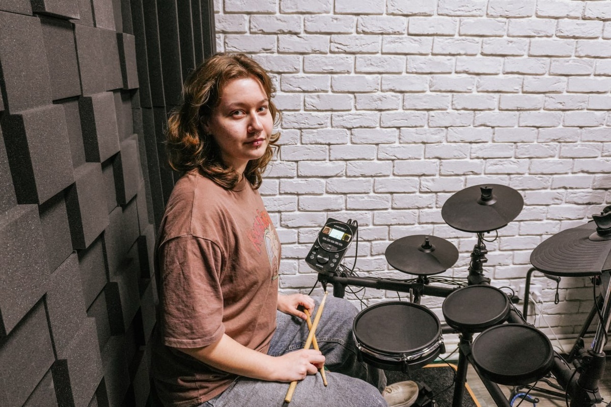 В студии звука участники кавер-группы «Вне времени» разучивают композиции, работают с профессиональной программой обработки и записи звука, сводят инструментальные треки и репетируют.