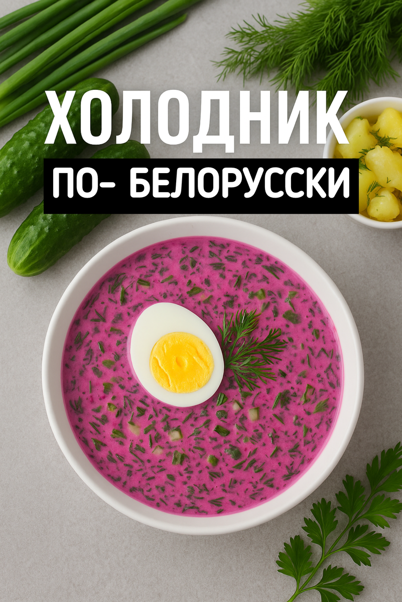Холодник (или холодный борщ) — это традиционное блюдо белорусской, литовской, латвийской и польской кухни. В белорусской кулинарии он особенно популярен летом, когда свежие овощи становятся основой рациона. Основу холодника составляет свекла, придающая блюду характерный розово-фиолетовый цвет, а также кефир, простокваша или сыворотка, что делает суп одновременно освежающим и сытным. Белорусский холодник — это гармония вкуса, цвета и текстуры: слегка сладковатая свекла, пикантный уксус или лимон, свежесть огурца, зелени и лёгкая кислинка кефира. Подаётся он обязательно охлаждённым и почти всегда с варёным яйцом и отварным картофелем — отдельно или прямо в тарелке. Холодник по-белорусски — это больше, чем просто суп. Это часть кулинарной культуры, передающаяся из поколения в поколение. Простое в приготовлении и яркое по вкусу, блюдо прекрасно освежает в жару, насыщает витаминами и дарит наслаждение каждому, кто пробует его впервые — или в тысячный раз.
