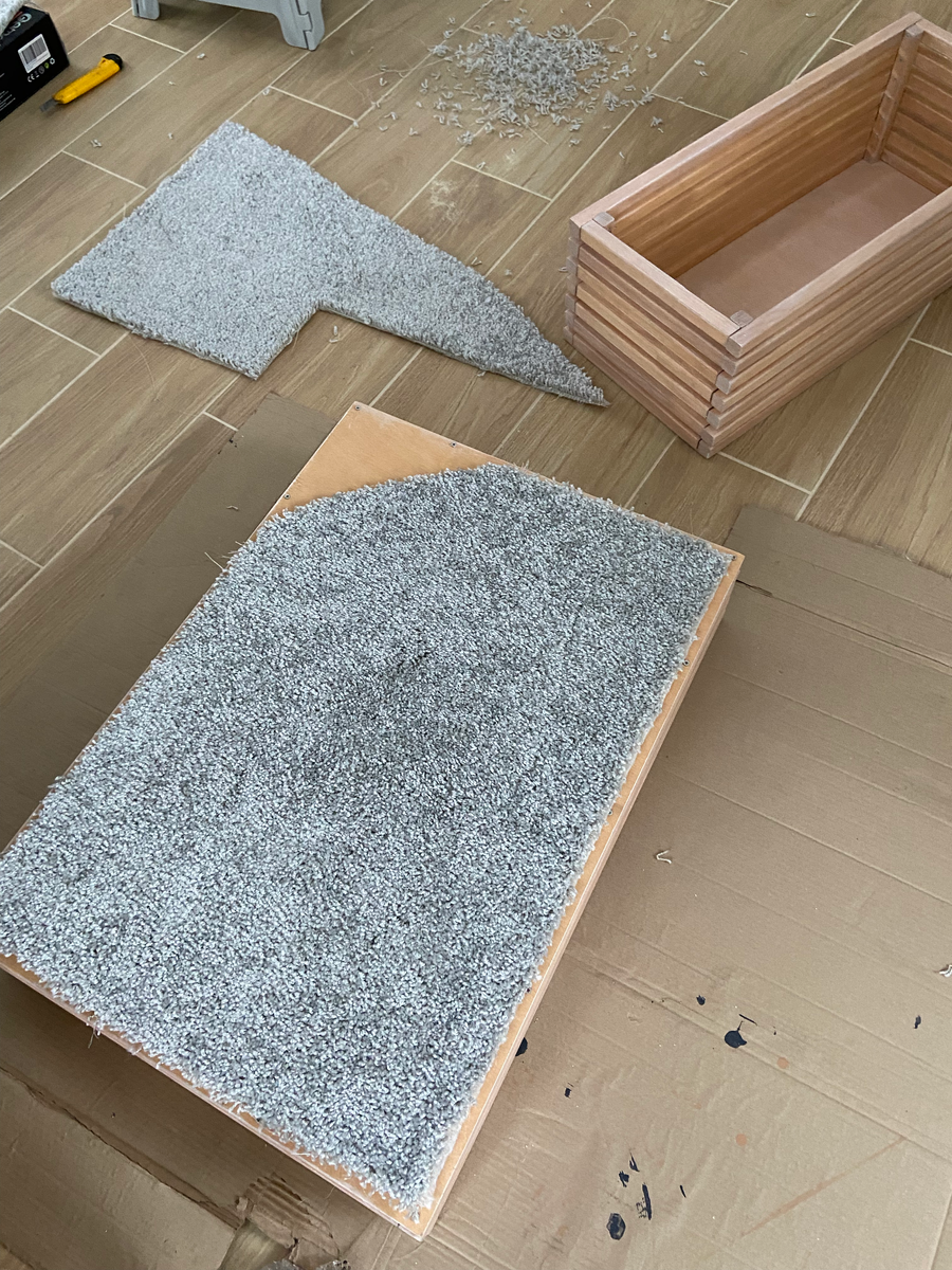 Из оставшихся обрезков стали выкраивать тёплую шубку для нашего ящика.