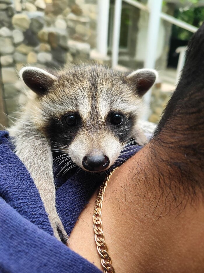 В своей прошлой истории я описывал диковинную зверушку, что у меня поселилась и заряжает позитивом меня и мою семью. А сегодня я расскажу о своём новом друге! Две недели назад, товарищ прислал мне вот это фото: Написал, что он пришёл в гараж, и после того как включил свет - к нему выбежали два маленьких енота. Судя по тому, что енотья детвора не боялась человека и всё время стрекотала, был сделан вывод, что они здорово проголодались, а стало быть уже какое-то время находятся без присмотра своей енотьей мамы. На всякий случай он не стал никого трогать и тихонько ушёл прикрыв за собой дверь. На следующий день он снова пришёл к себе в гараж, расчитывая заняться делами и надеясь на то, что енотики ушли. Но ещё на подходе услышал характерное стрекотание. Когда он открыл дверь еноты буквально забрались на него, всем своим поведением давая понять, что очень проголодались ((. Тогда он предложил мне енота (мальчика) в качестве питомца! Второго енота (девочку) взял ещё один такой же неблагоразум