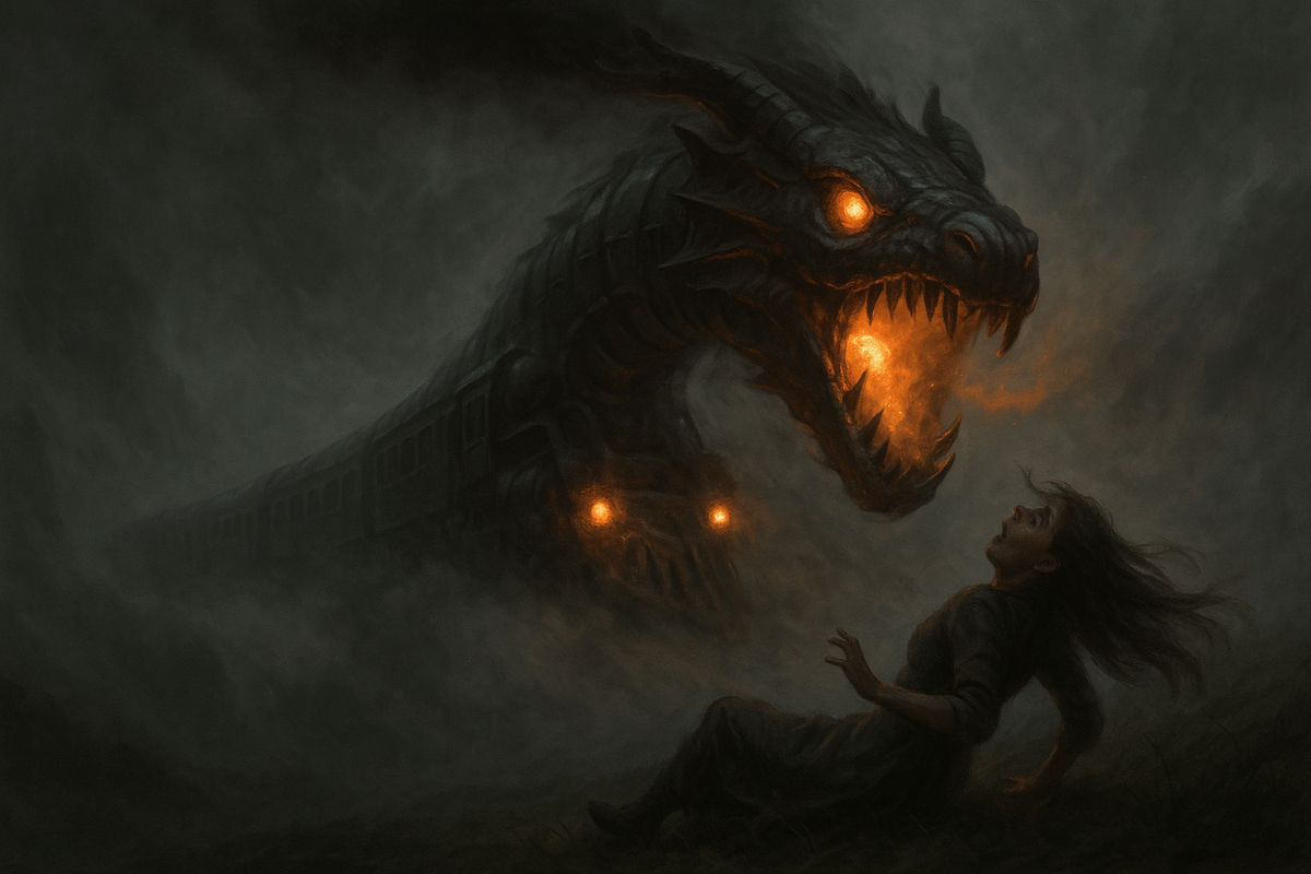 Где-то далеко раздался лязгающий щелчок - будто сдвинулась стрелка старых часов. Звук пришёл по струне, отдаваясь звенящим гулом в висок. Гул не утихал, стальная полоса дрожала всё сильнее и сильнее. Дракон взревел ещё раз - протяжно и тоскливо.