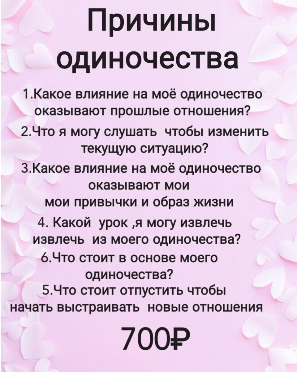 💥💥💥 Расклад Таро "Причины одиночества": Путь к новым отношениям Одиночество — это состояние, знакомое многим. Оно может быть связано с различными причинами: от непрожитых обид до страха перед новыми отношениями. Расклад Таро "Причины одиночества" предлагает уникальную возможность заглянуть внутрь себя и понять, что именно мешает вам открыть свое сердце для любви и новых связей. Как работает этот расклад? Каждая карта в раскладе раскрывает определенные аспекты вашей жизни и внутреннего мира. Они могут указывать на эмоциональные блоки, негативные установки или прошлые травмы, которые влияют на ваше восприятие отношений. Поняв корни своих страхов и сомнений, вы сможете начать процесс исцеления и трансформации. Работа с раскладом Таро не только помогает выявить причины одиночества, но и открывает пути для создания гармоничных отношений. Вы получите рекомендации о том, как изменить свою внутреннюю настройку, чтобы привлечь в свою жизнь человека, который станет вам близок. Этот процес