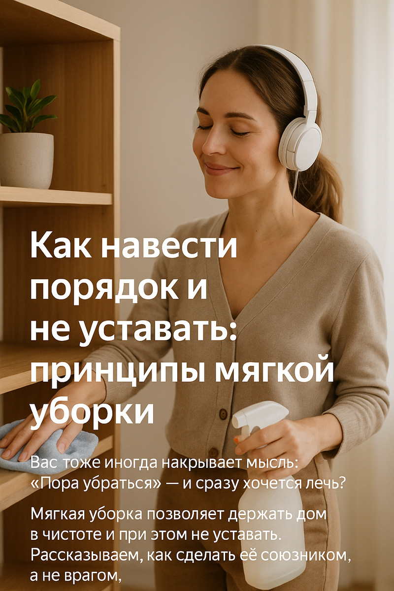 Мягкая уборка — это не про идеальную чистоту, а про комфорт. Она не забирает весь день, а вписывается в жизнь. Как? Сейчас расскажу! Не нужно устраивать марафоны. Достаточно уделить 15 минут одной зоне дома.