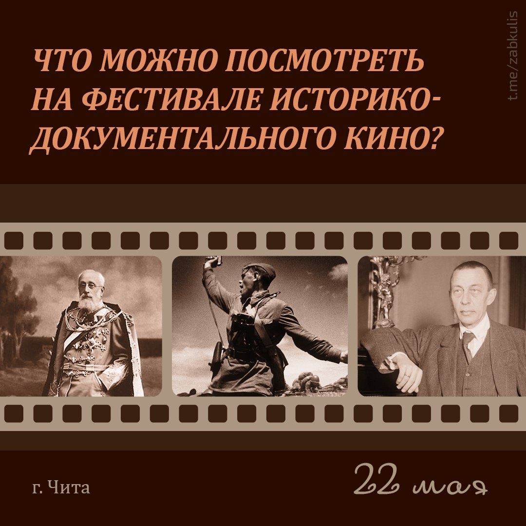В Чите пройдет фестиваль историко-документального кино 🕐22 мая в 11:00 состоится открытие фестиваля (кинотеатр "Бригантина", ул. Ангарская, 44, большой зал) 🕐23 мая в 11:00 – мастер-класс по документальному кино (Штаб общественной поддержки, ул. Бутина, 111) 📍где и что можно посмотреть – в нашей афише 🪙вход свободный #Афиша Предложить публикацию @zabkulisye_bot