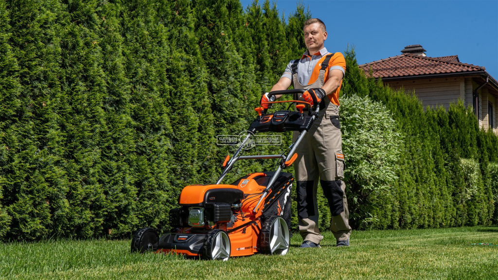 Эта модель мгновенно выделяется среди конкурентов не одной, а сразу тремя моментами: внушительной шириной захвата, вариатором и электростартером. Все это нужно, чтобы работа была и эффективной и предельно комфортной. Кстати, для комфорта здесь даже предусмотрена мягкая накладка на рукояти – удобная мелочь, которую почему-то часто обходят стороной.