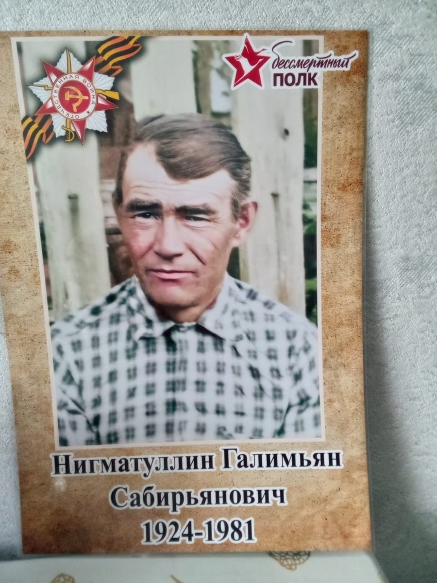 Победа в Великой Отечественной войне стала возможной благодаря мужеству и самоотверженности многих советских солдат. Каждый из них стремился внести свой вклад в общее дело, вернуть мир и безопасность на родную землю. Одним из таких героев был уроженец села Второе Иткулово Галимьян Сабирьянович Нигматуллин. В этом году ему могло бы исполниться 101 год. Однако жизнь его была недолгой: война настигла ветерана в мирное время, когда ему было всего 57 лет. Причиной стал осколок, который он получил во время ранения и который навсегда остался в его лёгком. В начале войны Галимьяну Нигматуллину было всего шестнадцать. Несмотря на юный возраст, он хотел отправиться на фронт и сражаться с фашистами. В военкомате могли отказать, поэтому он решился на отчаянный шаг, добавив себе пару лет. После подготовки парень попал на Курскую дугу, в самое пекло войны. Эта знаменитая битва проходила с 5 июля по 23 августа 1943 года и стала одним из ключевых сражений Великой Отечественной войны. Победа под Курско