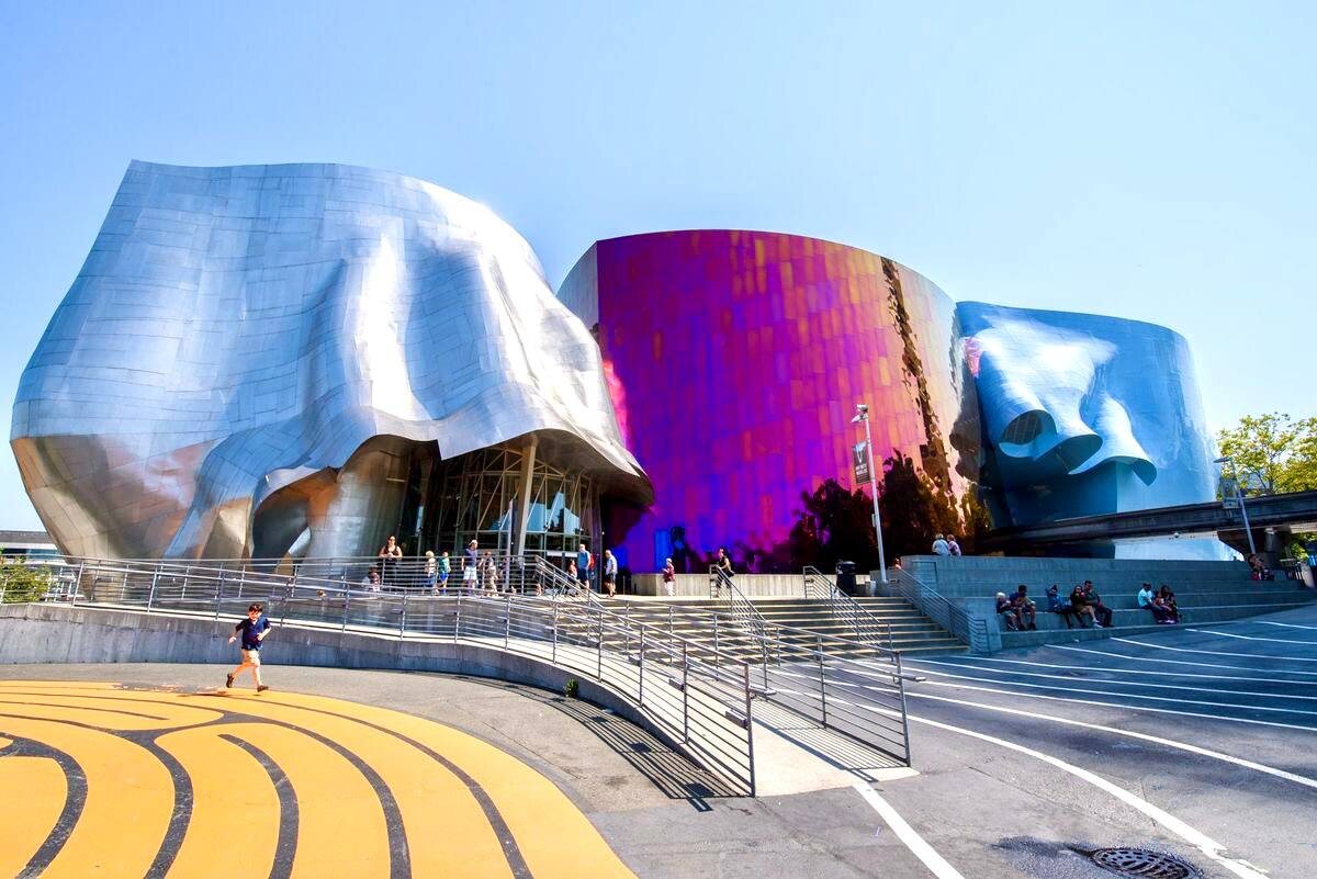 Музей музыки (MoPOP) #США🇺🇸 Музей в Сиэтле – необычное здание, построенное в 2000 году. Инициатором был Пол Аллен, а архитектором - Фрэнк Гери. Внешне это волнообразная конструкция из нержавеющей стали и алюминия. Цветовая гамма включает фиолетовый, серебряный и золотой оттенки. Внутри музея находятся интерактивные экспозиции, посвящённые поп-музыке и другим направлениям поп-культуры. Посещение MoPOP – это погружение в мир творчества. 🎒 Добраться до музея легко, так как он расположен в центре Сиэтла, недалеко от Space Needle. Доступны автобусы, монорельс и пешеходные маршруты. Интересный мир 🎸 #travel #путешествие #travelblog