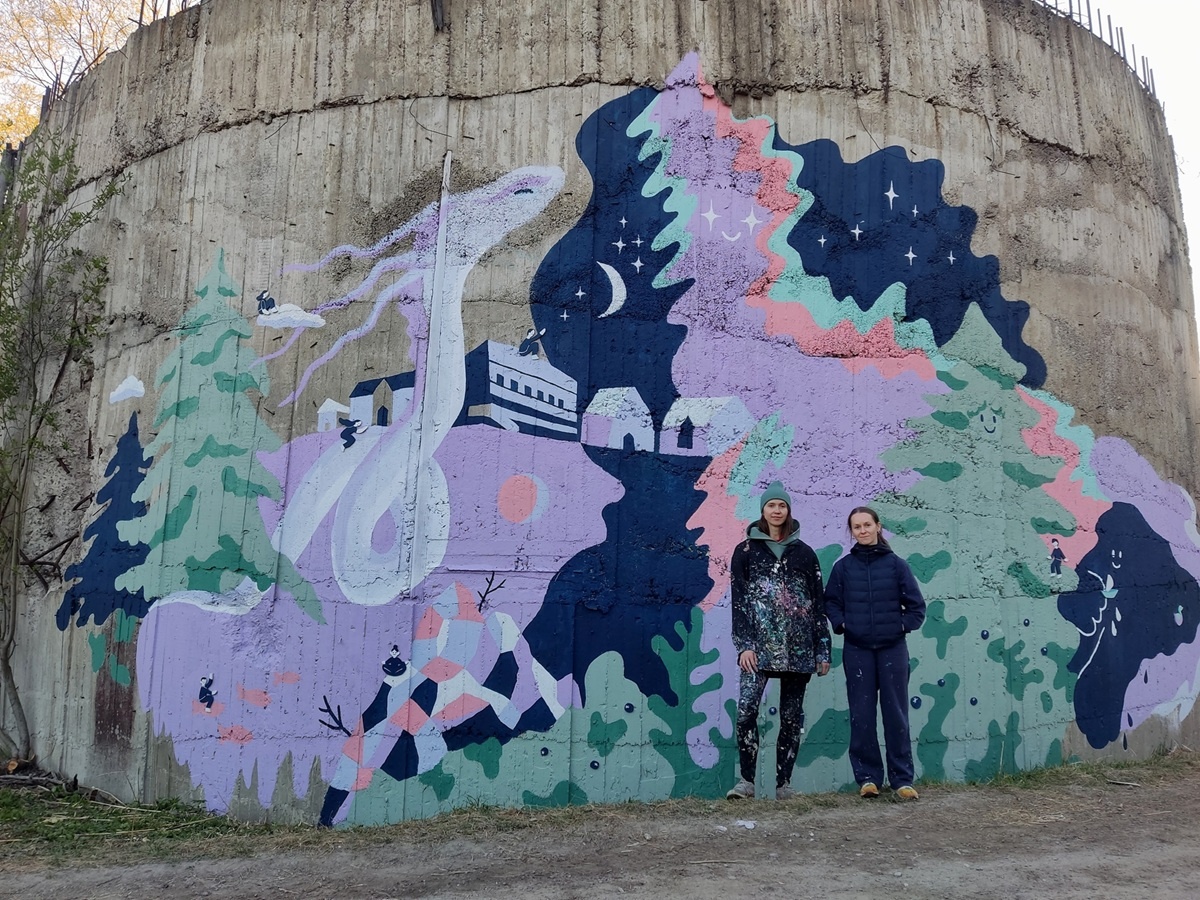 Художницы Ирина Климина и Лиза Шелест нарисовали на безликой стене заброшенного коллектора в туристическом городе Карелии рисунок в сиренево-розовых тонах. В работе им помогали жители Сортавалы и студенты местного колледжа. Рисунок назвали «Духи стихий Карелии». Авторы попытались отразить в мурале глубокую связь местных жителей и природы, рисунок дополнили силуэты деревянных человечков на озерах и скалах. Стрит-арт на коллекторе виден с горы Кухавуори. А улица, где он расположен, соединяется с парком Ваккосалми. © «Петрозаводск говорит»