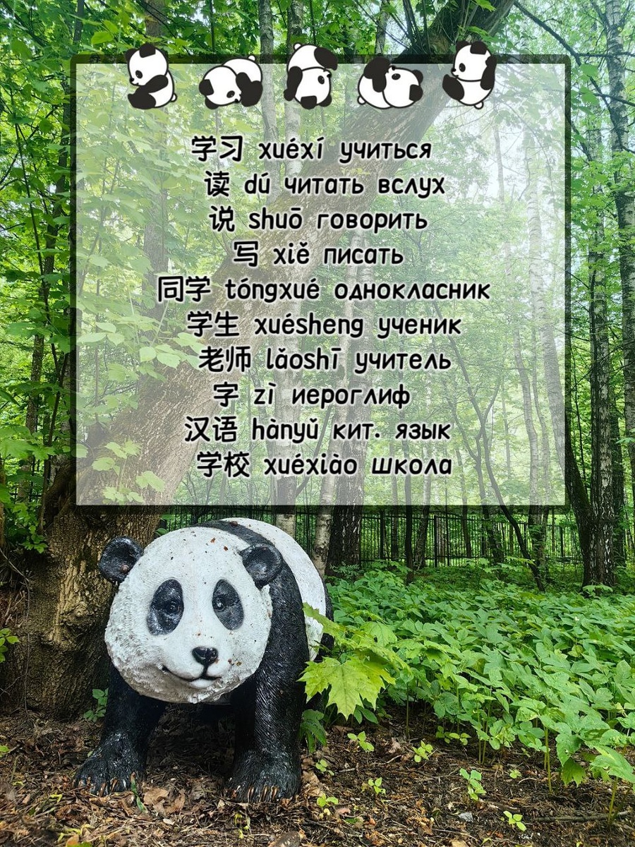 Словарик от Панды 🐼 Сохраняйте карточки от наших панд и учите HSK по уровням 🎓 HSK 1 📝 Тема: Школа 学习 (xuéxí) — сюэси — учиться 读 (dú) — ду — читать вслух 说 (shuō) — шуо — говорить 写 (xiě) — се — писать 同学 (tóngxué) — тонсюэ — одноклассник 学生 (xuéshēng) — сюэшэн — ученик 老师 (lǎoshī) — лаоши — учитель 字 (zì) — цзы — иероглиф 汉语 (hànyǔ) — ханью — китайский язык 学校 (xuéxiào) – сюэсяо — школа 📌 Составьте предложение с одним из этих слов и напишите его иероглифами или пиньинем! Например: 我的老师很好。 Wǒ de lǎoshī hěn hǎo. (Мой учитель очень хороший.) Мы проверим ваши ответы! 加油! #КитайскийЯзык #HSK1