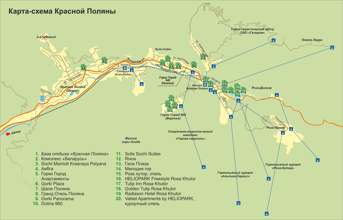 Чем заняться: Главные канатки: гондольные К-1 («Красная Поляна»), К-2 («Реликтовый лес»), К-3 («Вершина»).