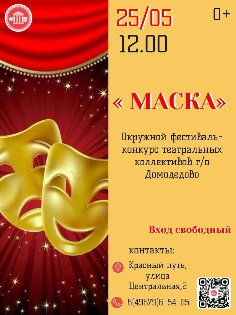 ✨ СДК «Русь» приглашает‼️ Состоится Окружной фестиваль - конкурс среди театральных коллективов г/о Домодедово «Маска» 🎭 Всех, кто влюблен в театральное искусство приглашаем провести это воскресенье вместе. 🚫 Возраст: 0+ 📆 25.05.2025🕒12:00 🏢 Сельский дом культуры (СДК) «Русь» 📍 г.о.Домодедово, с.Красный Путь, ул.Центральная, д.2 💰 Вход свободный❗️ ✅ Мероприятия Домодедово https://dzen.ru/id/66f10385cc4c5a16f7b5fb02 http://vk.com/domodedovo_events http://dzen.ru/domodedovo_events