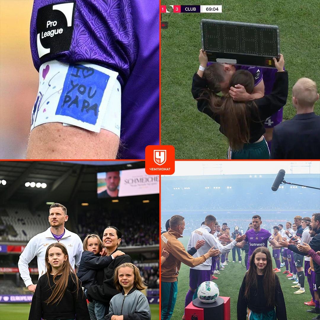38-летний защитник «Андерлехта» провёл последний матч в карьере. Он вышел с капитанской повязкой, расписанной дочерьми. Старшенькая даже объявила о замене папы вместо резервного арбитра 🔄 После игры команды устроили бельгийцу прощальный коридор. Впереди шла, конечно же, дочка