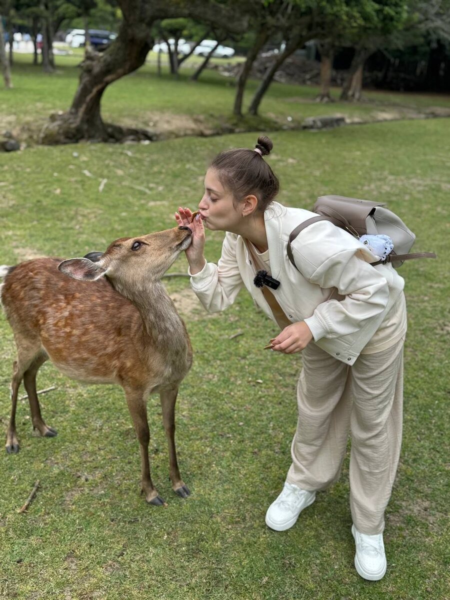 Фигуристы-парники и супруги Алёна Косторная и Георгий Куница отправились в путешествие по Японии, где посетили известных парк Нара. Там живёт множество оленей, которые свободно гуляют и считаются священными животными. В своих соцсетях Косторная опубликовала фото, на котором кормит животное крекером, очень близко наклонившись к нему лицом. Японские пользователи портала SportsNavi испугались, что девушка могла покормить оленя изо рта в рот и передать ему чужеродные бактерии. В комментариях они даже назвали такое поведение жестоким обращением. ポリラス: «Это как в «Принцессе Мононоке» [известное японское аниме]? Не хотелось бы, чтобы оленю передались чужеродные бактерии, поэтому, пожалуйста, прекратите кормить изо рта в рот. Например, кусать печенье, а потом совать его в рот оленю…» top********: «С кормлением изо рта в рот нужно быть осторожнее. Найдутся люди, которые захотят подражать». sgi********: «Речь не просто о призыве быть осторожными! Олени в парке Нара находятся под защитой как боже