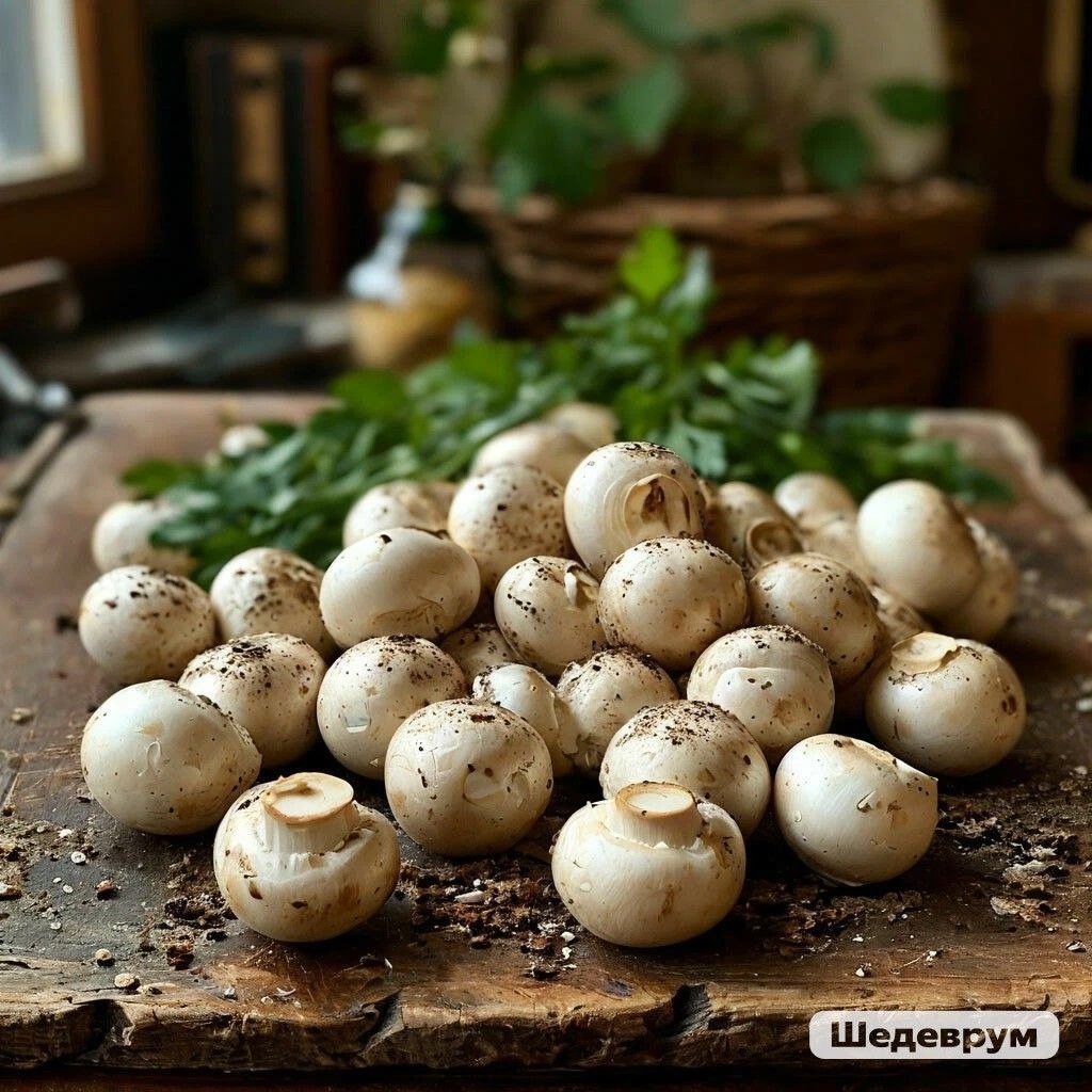 При покупке обратите внимание на их внешний вид – грибы должны быть твердыми и упругими. По цвету могут быть как белыми, так и светло-серыми и даже розоватыми. А вот если гриб темный – это повод насторожиться. Потемнение – признак несвежести. Если шляпка гриба на ощупь влажная, липкая и скользкая, значит, его хранили неправильно. Такой продукт тоже лучше не брать. Шампиньоны из магазина достаточно промыть холодной проточной водой. Замачивать их не нужно, иначе грибы впитают воду и потеряют свои вкусовые качества. Шампиньоны в холодильнике хранятся при температуре не выше +6°С и не более 10–14 дней с учетом срока годности на упаковке. Если вы решите их заморозить, то лучше всего подойдут небольшие крепкие шампиньоны одного размера. Их нужно перебрать, вымыть, затем нарезать и высушить, положив одним слоем на полотенце. Расфасовать удобными порциями и поместить в морозилку. Можно замораживать не только свежие грибы, но и те, что уже прошли термическую обработку (жареные или вареные). Сро