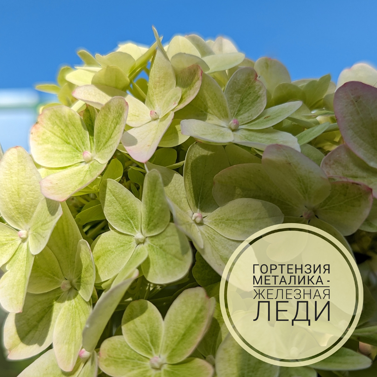 Стартует Металика в нежно-лаймовом оттенке - а дальше начинается настоящая гортензиевая магия. Сначала кайма каждого лепестка светлеет, и цветки приобретают акцентный белый кант. В этот момент сорт начинает резко выделяться на фоне других, и становится понятно, что Металика - это статусный сорт, уникальный лоск которого показывает утончённый вкус хозяина сада. А дальше - больше, ведь белый кант - лишь начало цветовой магии от этого сорта. Спустя непродолжительное время окантовка лепестков начинает интенсивно окрашиваться. Сначала она становится припудренно розовой, затем цвет начинает уходить в глубину, приближаясь в рубиновым оттенкам, середина лепестков уходит в более глубокий зелёный акцент - и вот перед нами пиковая красота этого сорта - гигантские соцветия, собранные из огромных зелёных цветков в контрастном рубиновом окаймлении! С этого момента беглый взгляд по цветнику всегда останавливается на этом сорте - он притягательно завораживающий! Статусный, модный и исключительно прекрасный! Вы думали это вся магия? Но нет.. Металика приготовила нам ещё один цветовой сюрприз. С наступлением контрастных дневных и ночных температур сорт начинает стремительно окрашиваться в звенящий яркий цвет. Кайма на лепестках начинает расширяться, заполняя практически всё пространство цветков - и мы приближаемся к осени в искрящемся ярко-рубиновом цветовом акценте! С такими транспарантами осень ещё не встречали! В этот момент особенно ярко выражена порода сорта - его уникальный маркёр. В лучах солнца соцветие приобретает холодный металлический отлив. Это просто умопомрачительная картина! Что тут скажешь - Металика!