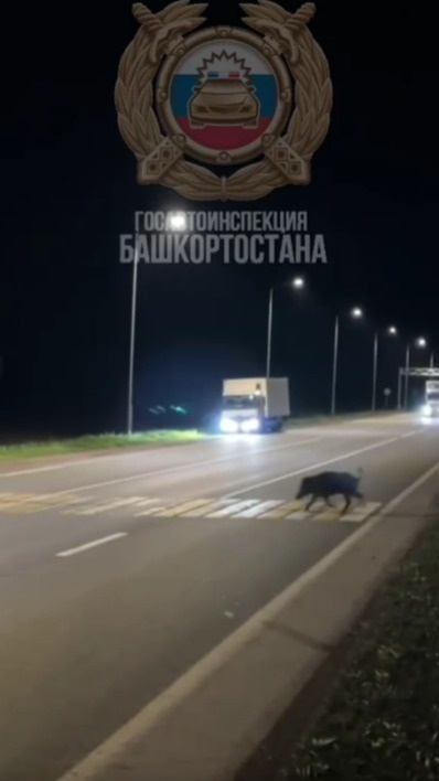 На трассе Уфа – Оренбург заметили дисциплинированного дикого кабана. На подъезде к М-12 «Восток» ночью появился лесной гость. Сначала он шёл по обочине, а затем перешёл дорогу по пешеходному переходу.