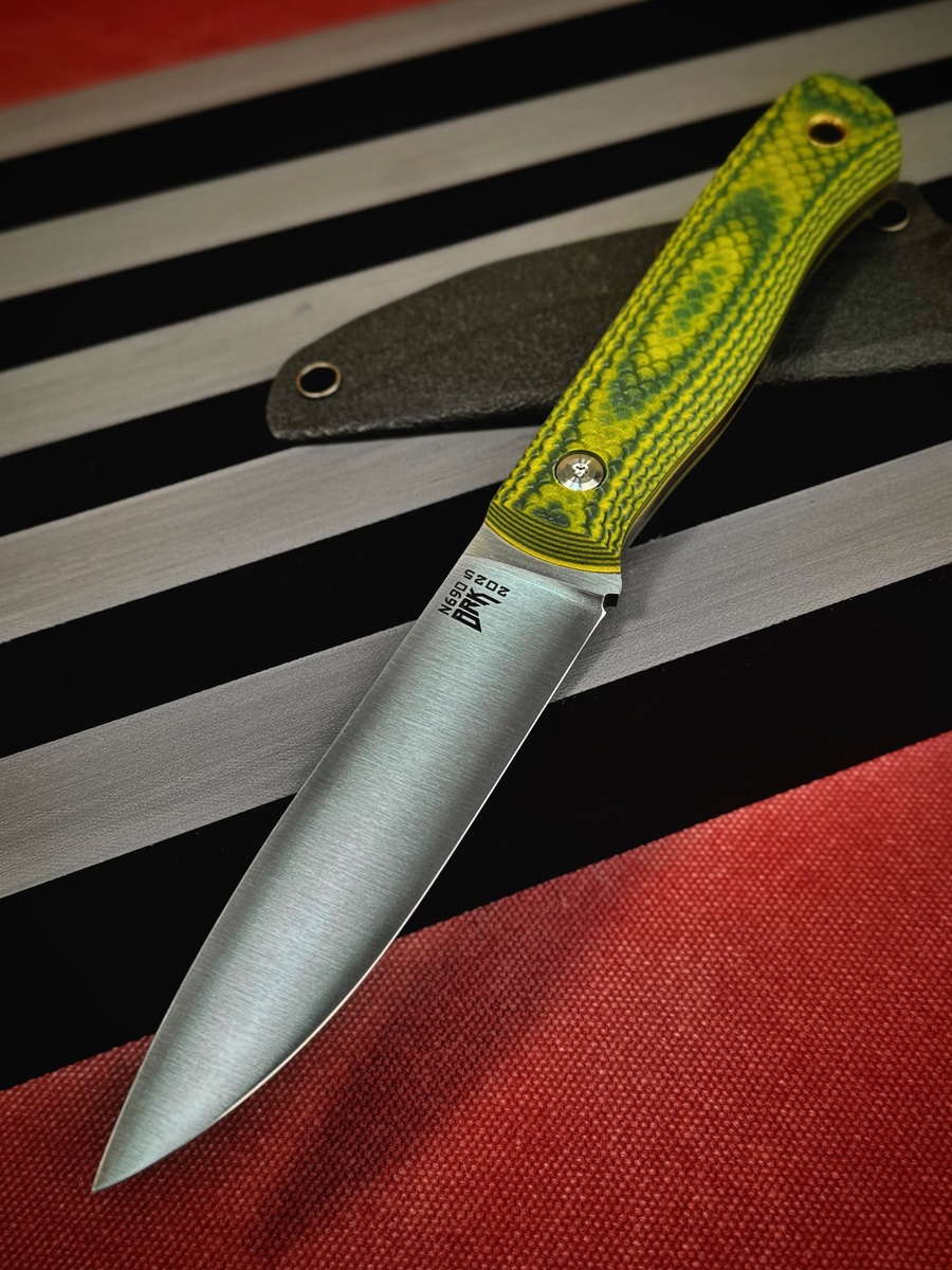 Стильный работяга «Бушкрафт» в «чешуе». Клинок выполнен из нержавейки N690. Накладки в зеленых оттенках изготовлены из G10 c насечкой для более надежного хвата. В комплекте ножны из кайдекса. Длина ножа: 218 мм Длина клинка: 109 мм Обух: 3.1 мм Длина рукояти: 109 мм. ‼️Вести диалог только с @burlax1