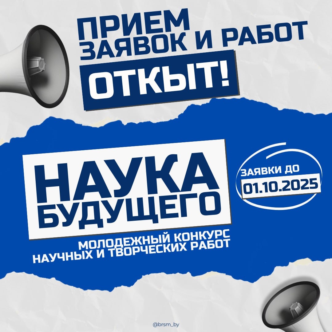 ⚛️Молодежный конкурс научных и творческих работ «Наука будущего» Конкурс проводится Национальной академией наук Беларуси ежегодно по следующим номинациям: 📌Физика, математика и информатика; 📌Физико-технические инновации; 📌Химия и природопользование; 📌Экспериментальная биология. Экология, сохранение биоразнообразия; 📌Медицина будущего; 📌Гуманитарное знание и творчество в XXI веке; 📌Инновации в АПК; 📌Инновации благоустройства городов, районных центров, поселков и деревень Беларуси; 📌Будущее за качеством: инновации и творчество молодежи. В каждой из номинаций конкурс проводится по трем категориям: школьники и студенты; магистранты и аспиранты; рабочая, творческая молодежь (до 31 года по состоянию на 1 января конкурсного года). Подать заявку и узнать подробную информацию можно здесь.
