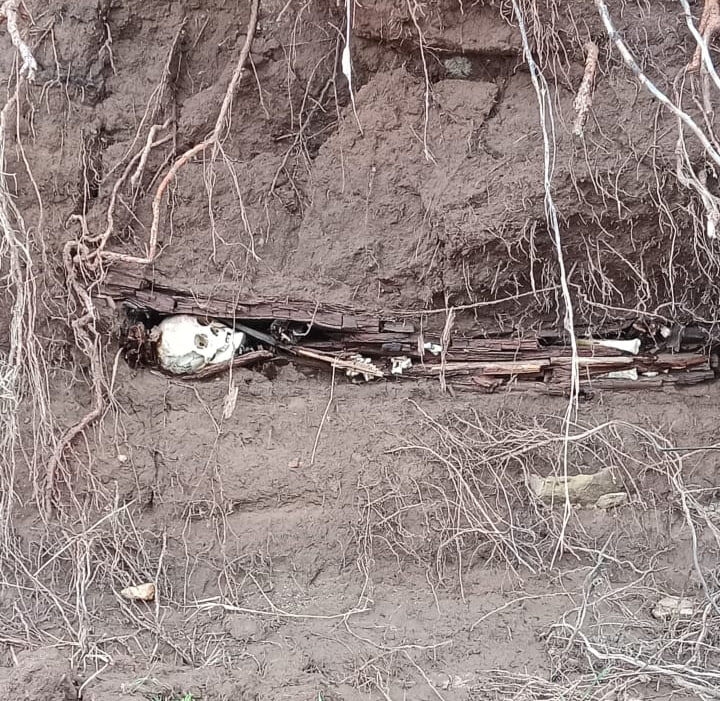 На берегу Нюи вода размыла древнее захоронение 💀 По словам чамчинцев, когда-то здесь, в местности Сергелях, где сейчас — густой лес, жили люди. Там было два захоронения, но одно из них пару лет назад ушло под воду. Сейчас администрация Орто-Нахаринского наслега ждёт приезда полиции из Ленска для проведения расследования. ⚪ Ищем оператора!