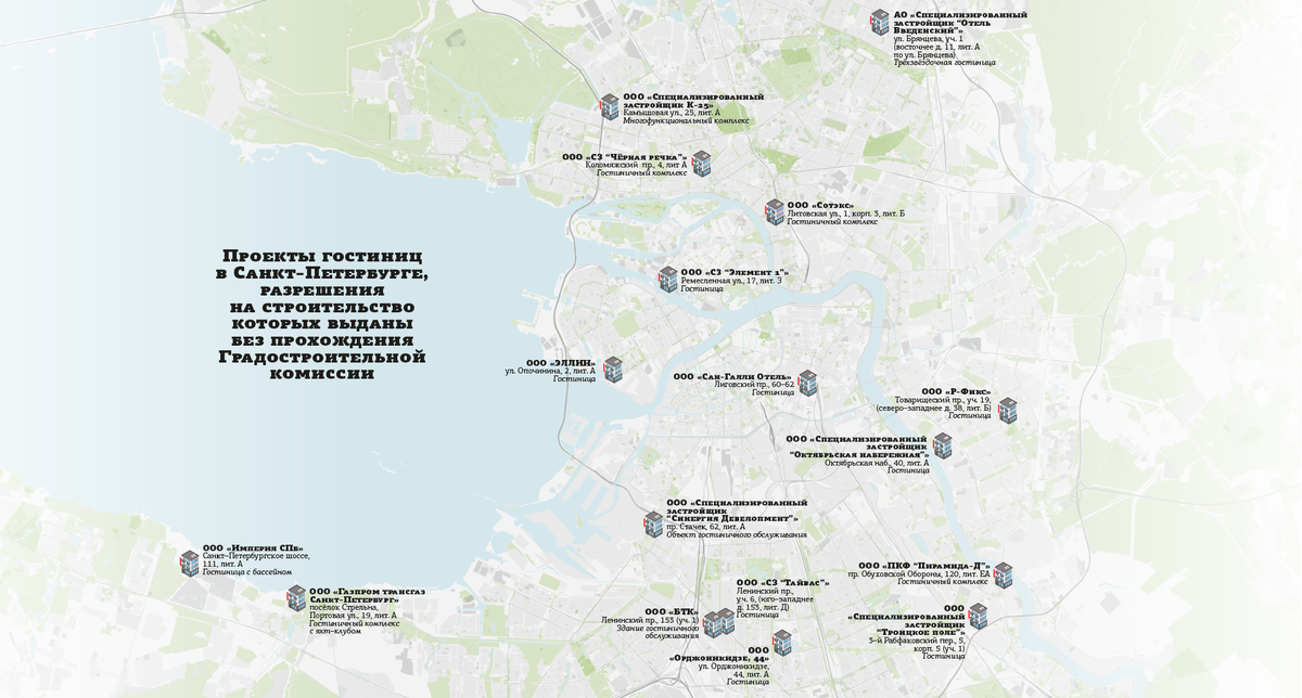 Как стало известно "ДП", в строительном блоке Смольного решили пристально изучить проекты гостиничной инфраструктуры — классические гостиницы, сервисные апартаменты и то, что участники рынка называют псевдожильём, а также другие проекты, заявленный функционал которых не похож на фактический. На последних совещаниях в комитете по строительству было сказано, что многие из них совсем не обременены обязательствами по отношению к городу и не попали в поле зрения тех, кто следит, чтобы девелоперы в рамках своих проектов занимались также развитием инфраструктуры (социальной, транспортной, благоустройством и т. п.).