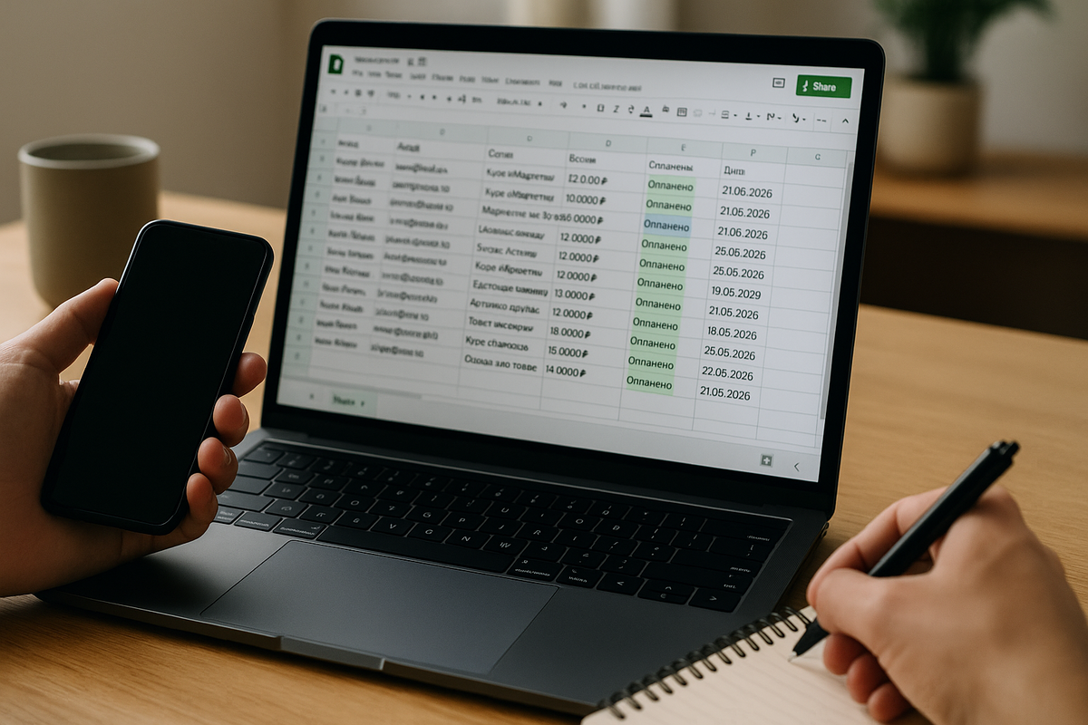 - Менеджер вручную переносит данные об оплате в Google Таблицу;