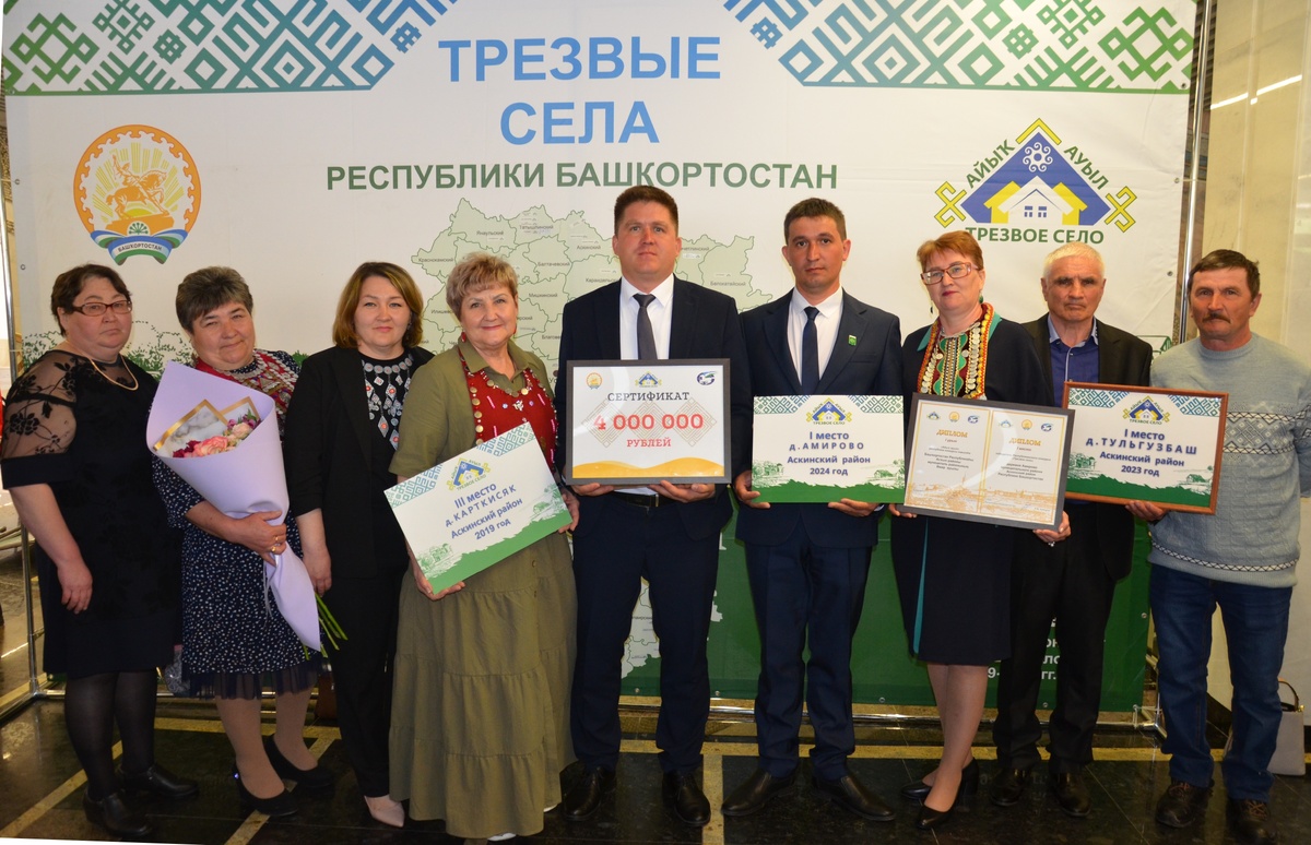 В Уфе прошла церемония награждения победителей республиканского конкурса «Трезвое село». Объявлены 12 самых трезвых сел республики в четырех номинациях, среди них наша деревня Амирово — победитель в номинации «Средние населенные пункты».