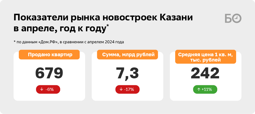 Победив мрачные прогнозы экспертов на первый квартал 2025 года, рынок новостроек РТ все-таки пошел в минус в начале второго отчетного периода. Сразу в два раза — с 2,8 тыс. до 1,4 тыс. — рухнуло количество зарегистрированных Росреестром договоров долевого участия по Татарстану за апрель 2025 года в сравнении с аналогичным периодом прошлого года. К уровню марта спад тоже ощутимый: застройщики РТ недосчитались 12% ДДУ.