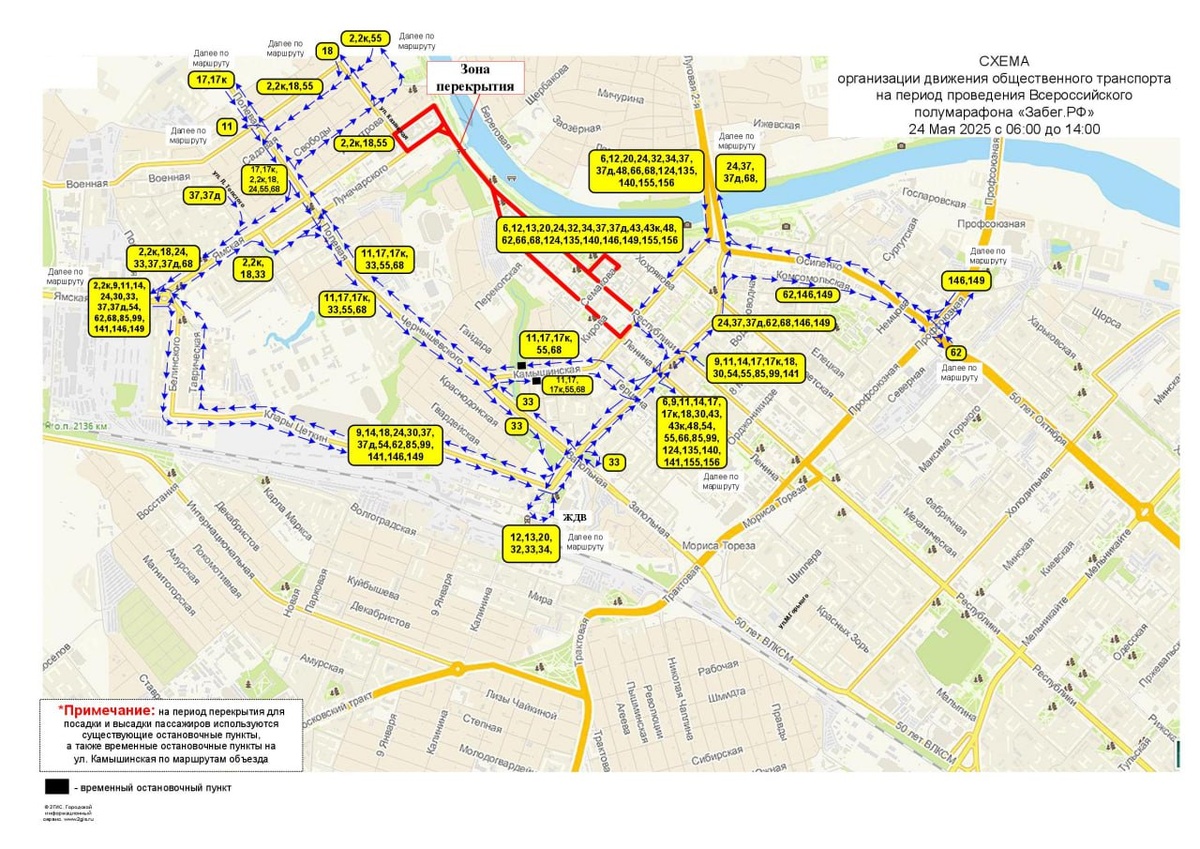 24 мая с 6 до 14 часов на период проведения Всероссийского полумарафона «Забег.РФ» будет прекращено движение транспортных средств по