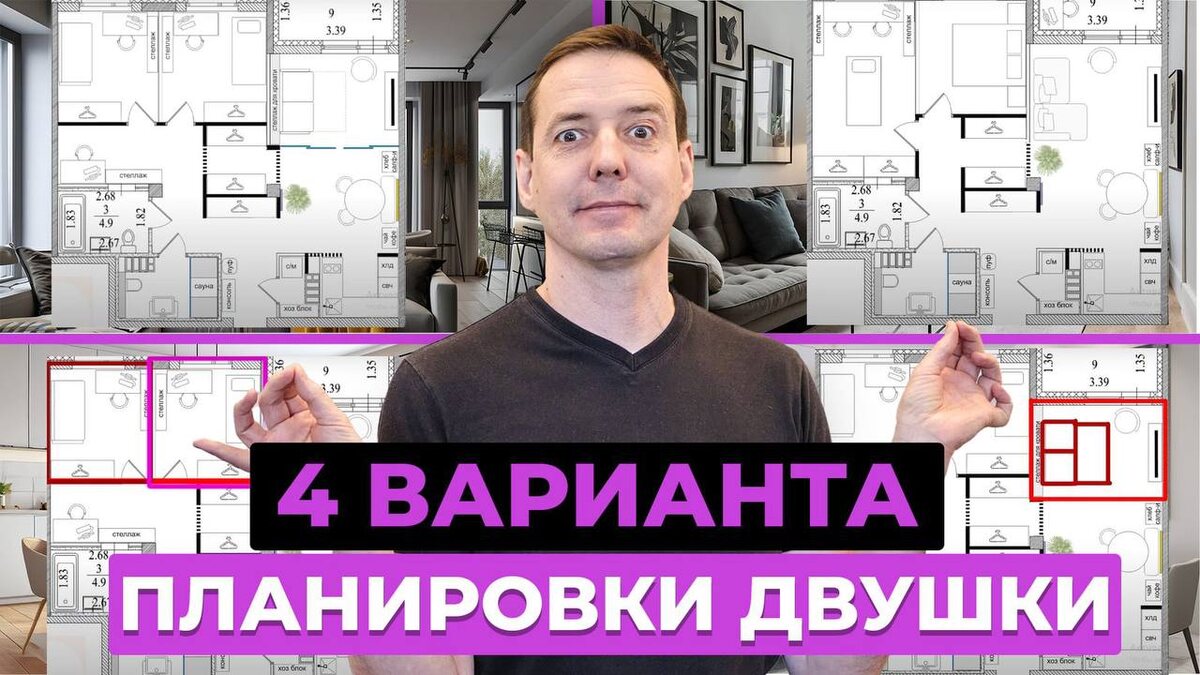 4 ПЛАНИРОВКИ 2-комнатной квартиры в ЖК Основа: как разместить семью из 4 человек