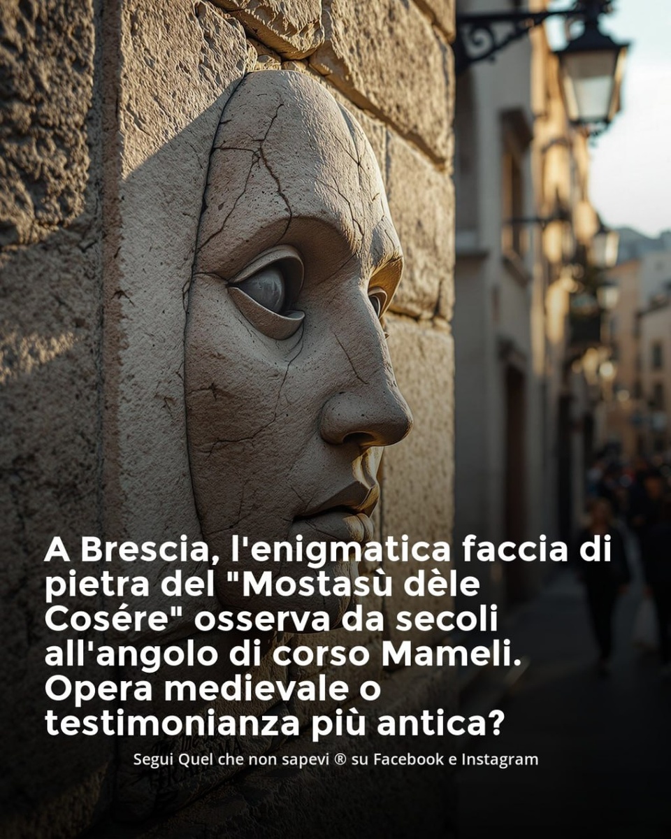 В Брешии есть каменное лицо, которое вот уже несколько веков молча наблюдает за прохожими и хранит секреты, которые никому еще не удавалось раскрыть до конца. Оно расположено между corso Goffredo Mameli и contrada delle Cossere, и жители Брешии знают его как "Mostasù dèle Cosére". Загадочное лицо, высеченное из камня, бесстрастно наблюдает за городом с незапамятных времен. Но кто же на самом деле этот таинственный наблюдатель, который следит за поколениями жителей Брешии? Теории о его происхождении увлекательны и противоречивы. Это может быть декоративный элемент старинного средневекового здания, реликвия римских времен или даже портрет готского короля Теодориха. Другие интерпретации связывают его с местными легендами Средневековья. Торопливо шагая по своим повседневным делам, мы редко поднимаем глаза на этого молчаливого свидетеля истории. Однако он продолжает наблюдать за нами, как и наши предки. В следующий раз, проходя мимо, поднимите глаза и поприветствуйте его - в конце концов,