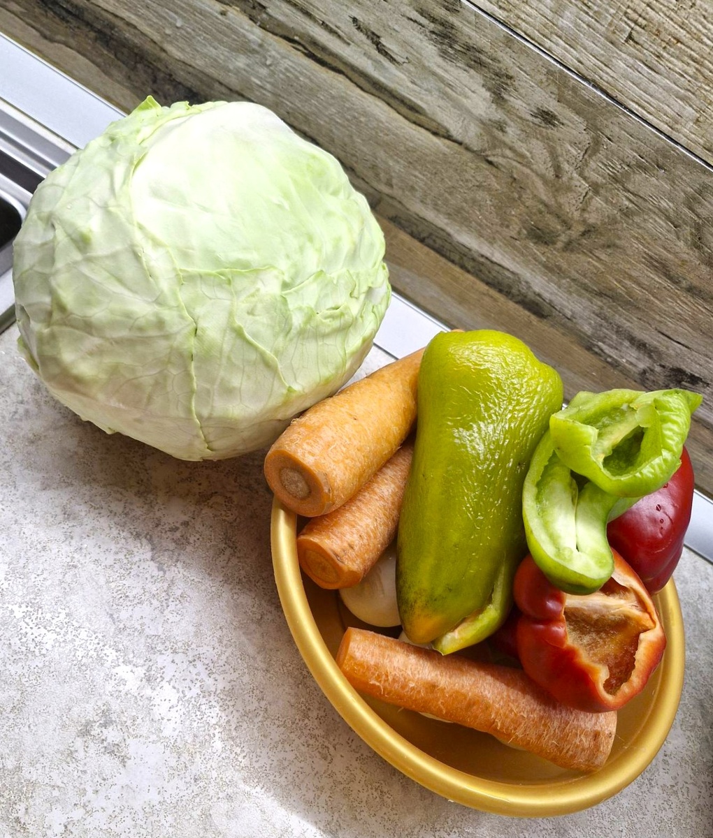 Капусту по праву можно назвать королевой овощей, а её польза для здоровья проверена веками. Салат из капусты приносит огромную пользу организму, насыщая его витаминами, минералами и клетчаткой. Данный рецепт - квинтэссенция простоты и пользы, идеальное решение для тех, кто ценит свое время и заботится о сбалансированном питании. Заготовив такую капусту впрок, можно несколько месяцев наслаждаться полезным и вкусным салатом. Для приготовления возьмем: На меньшее количество капусты убавляем ингредиенты пропорционально количеству капусты Все овощи моем, лук и морковь очищаем от кожуры, перец от сердцевины и белых прожилок внутри. Капусту тонко шинкуем, лук и перец нарезаем полукольцами, морковь натираем на крупной терке. В большой емкости смешиваем все ингредиенты (я это делаю буквально в тазу), добавляем соль, сахар, уксус и растительное масло. Всё тщательно перемешиваем и даем постоять примерно час. Затем капусту еще раз тщательно перемешиваем и раскладываем по банкам, доверху заливая ка