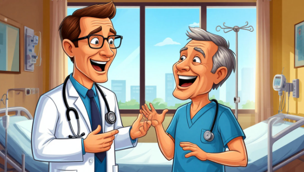 5. Я очень боюсь врачей, особенно однокурсников. - Мужчина рассказывает коллегам: